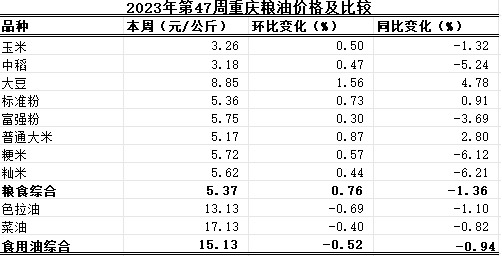重庆农产品及农资价格周报2023年第47期 (总第778期)