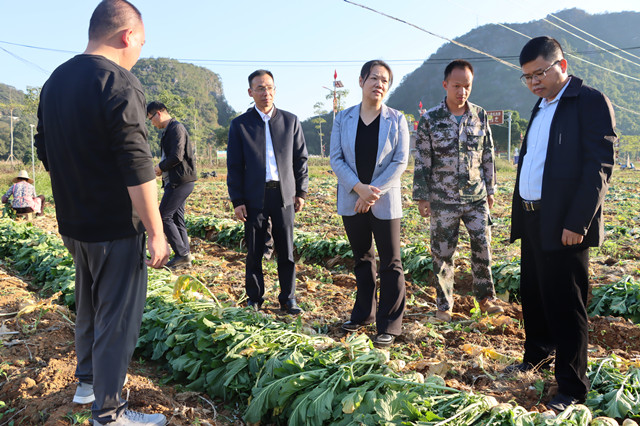 为高质量完成试点项目各项工作,11月21日,钟山县人民政府副县长兰云率调研组到自治区“乡村振兴+行动学习”试点项目示范区,调研钟山县英家大头菜全产业链发展工作,县委组织部、农业农村局分管领导及清塘镇党委书记等人陪同。