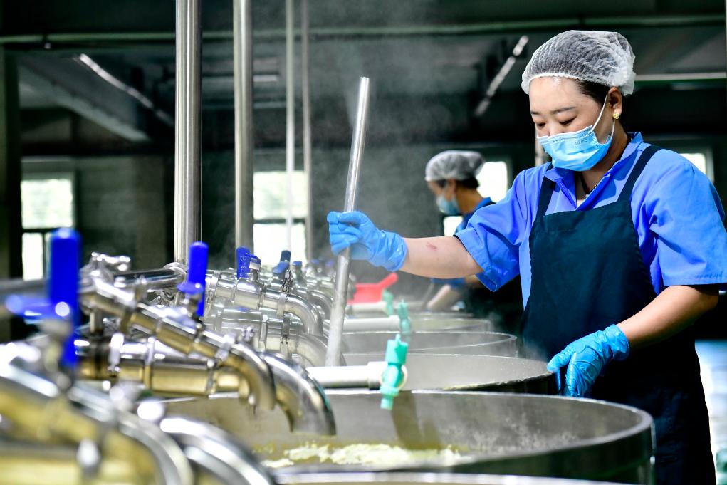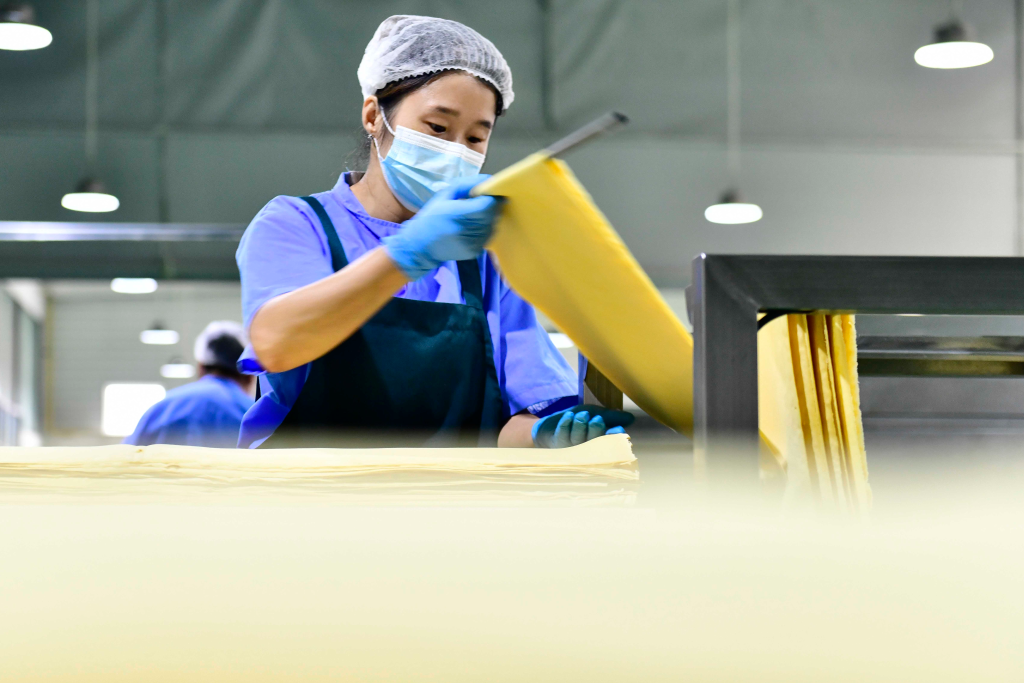 走进山东省滨州市惠民县清河镇的惠民县东方豆制品有限公司标准化生产车间,浓郁的豆香味道扑鼻而来。大豆被磨成豆浆,经过熬煮、点卤、泼制等,变成软糯的豆腐块;在数字化控制系统下,最终产出的豆腐皮、五香豆干等多种豆制品实现自动称重,并按照种类分别真空包装,发往全国各地。