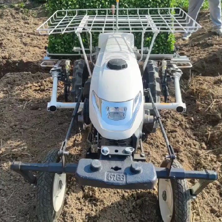 江苏玖顺农业机械有限公司的“玖顺”大中型油菜毯状苗大中型栽机以6行每小时4-5亩极少空栽率的效率完成一亩丘陵山区地形田块的种植。
