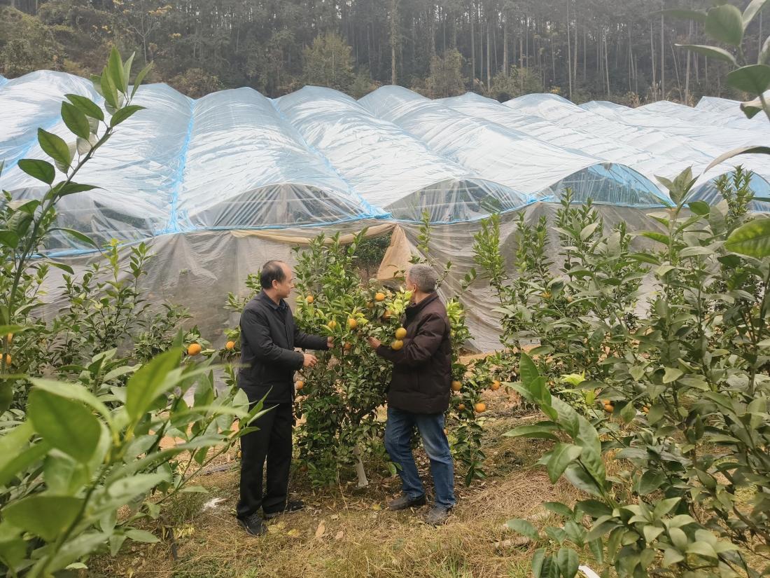 农技人员在沃柑基地指导农户进行沃柑抗旱防冻