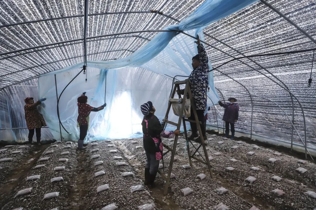 将一排大棚加固后,余和清又来到羊肚菌大棚,检查里面的湿度和温度,发现温度有些偏低,他便带领村民将内膜盖了下来。“一层膜有时候保温不行,我们在大棚内又搭建了一层小棚,上面追加了一层膜,就像加了一件衣服一样,那温度就上来了。”余和清说,“合理调控好温度、湿度和光照,做好水肥管理及病虫害的防治,就能确保设施蔬菜正常生长,最大限度减轻冻害损失。”