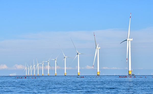 2023年9月13日拍摄的辽宁大连庄河海上风电项目。新华社记者 杨青 摄