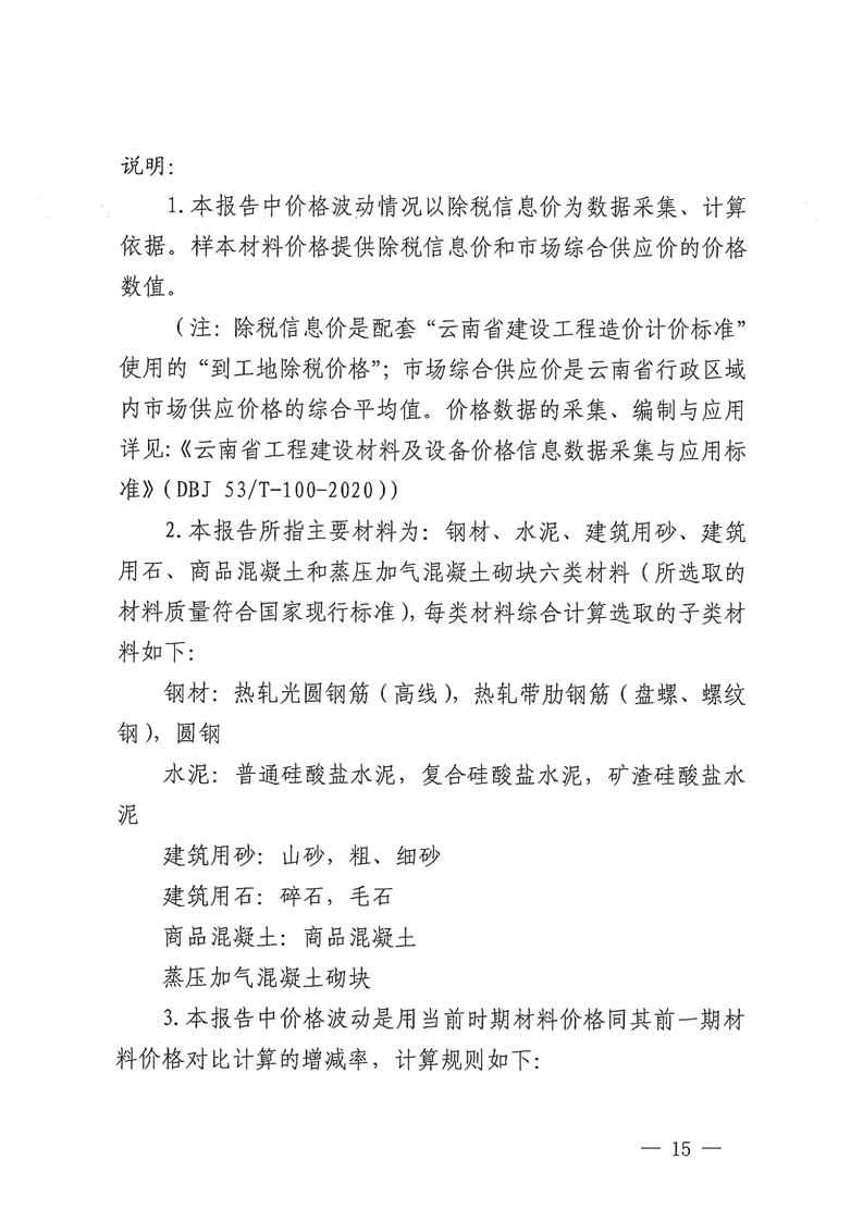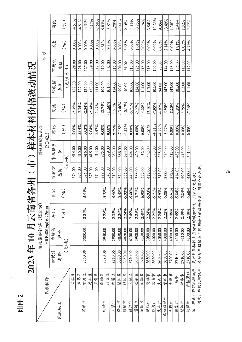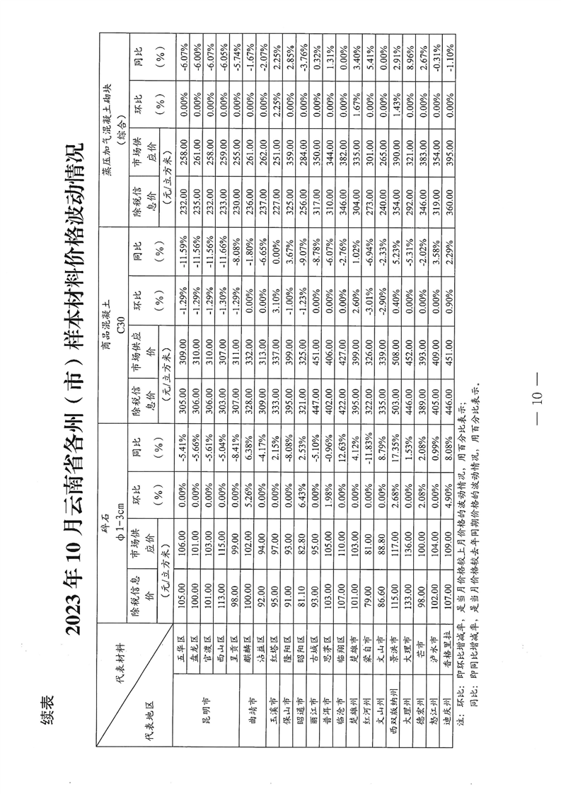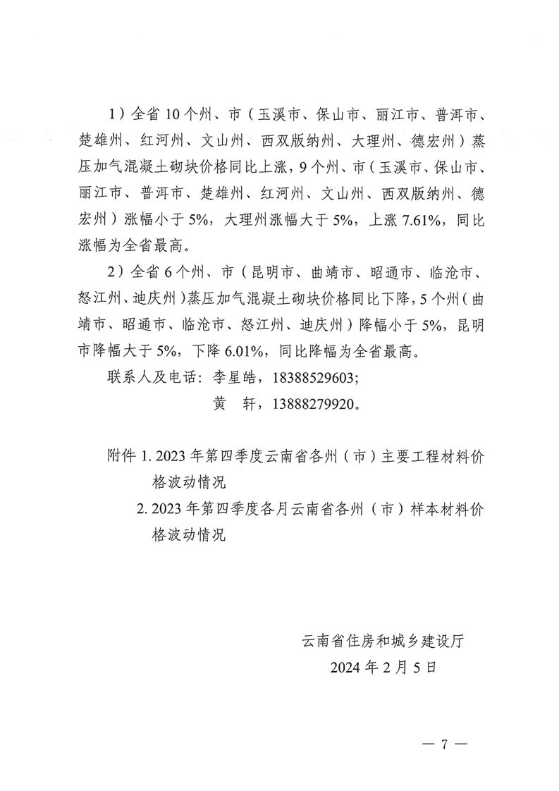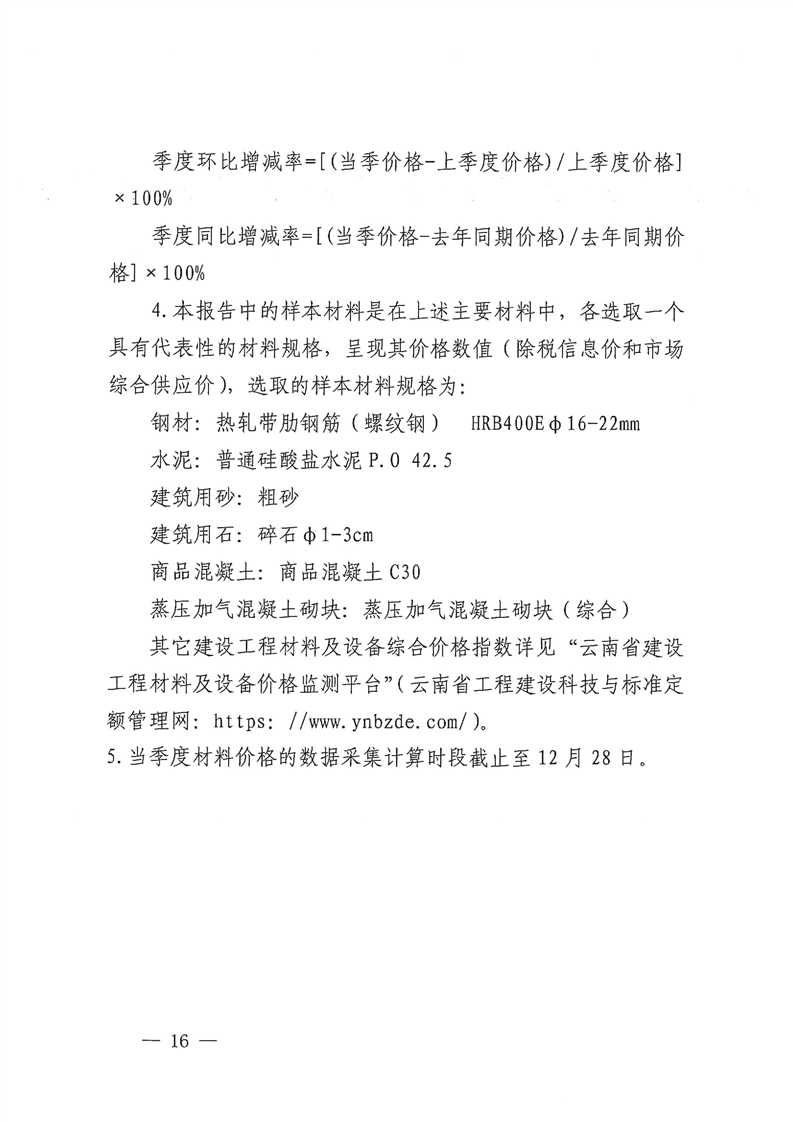 云南省住房和城乡建设厅关于2023年第四季度云南省主要工程材料价格波动情况的通报