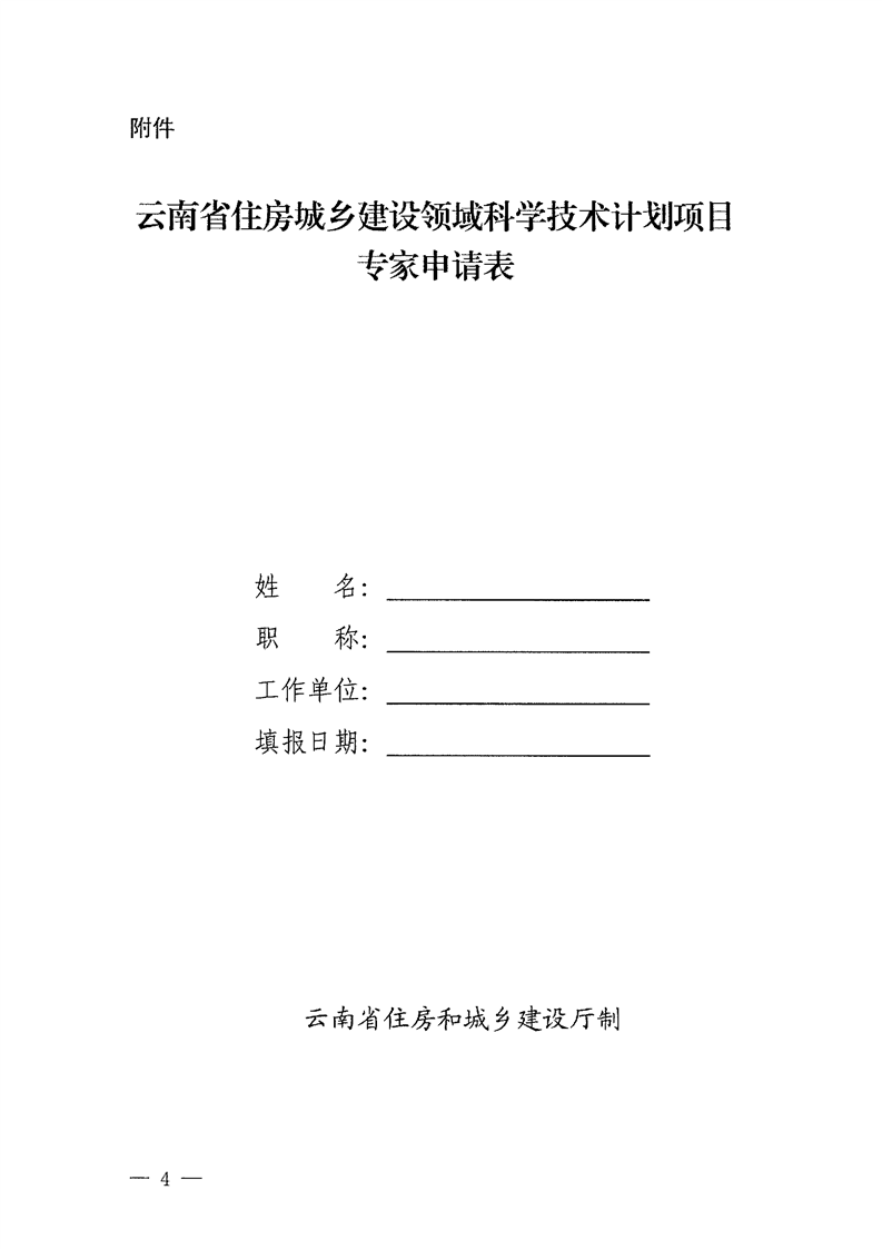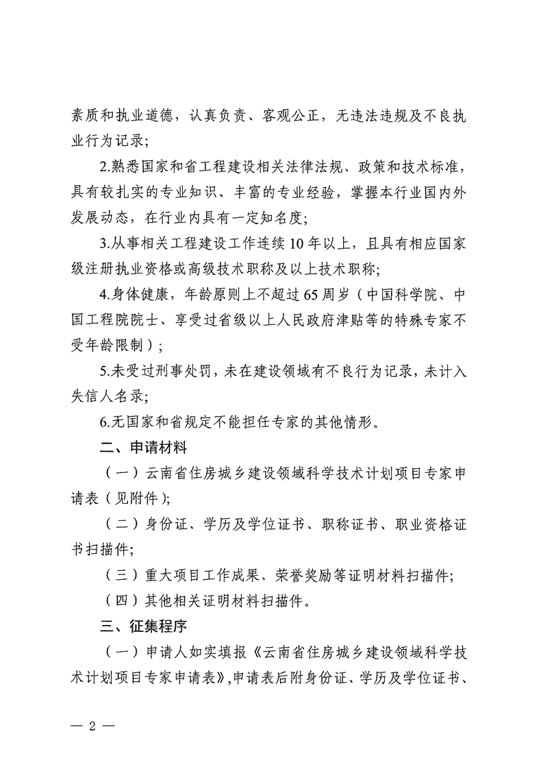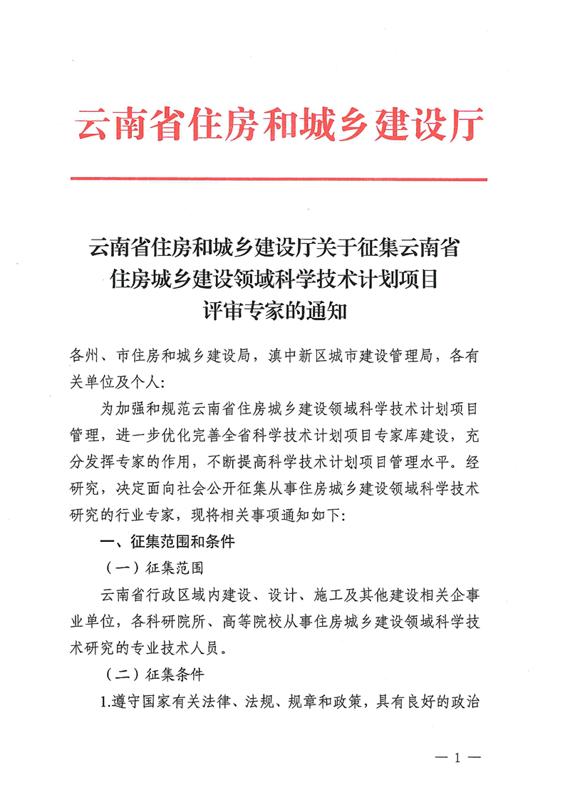 云南省住房和城乡建设厅关于征集云南省住房城乡建设领域科学技术计划项目评审专家的通知