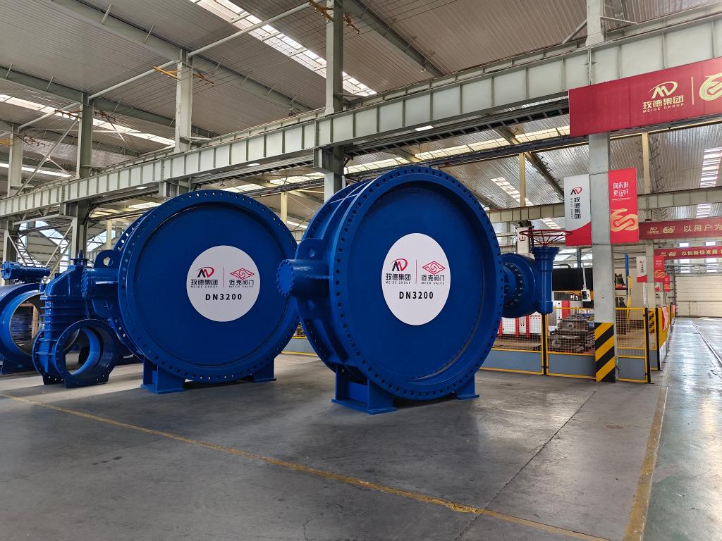 济南迈克阀门科技有限公司生产的大型双偏心蝶阀。新华社记者邵鲁文摄