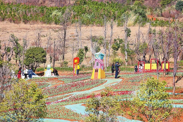 畅游安宁市“金色螳川”花海。记者 黄兴能 摄