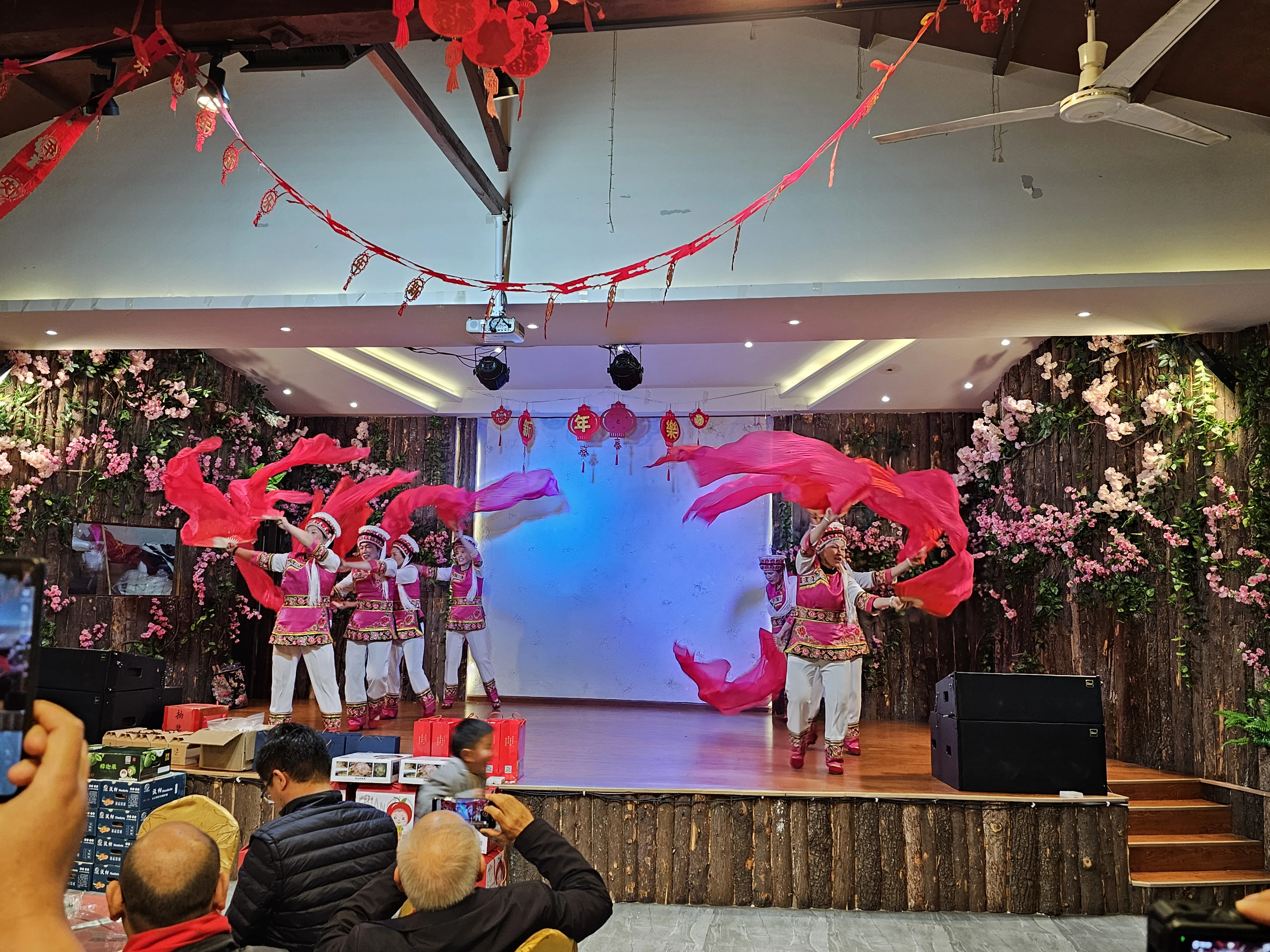 沙龙会后,农民田间学校“村晚”正式上演。沙朗白族乡阿达乡音艺术团、当地村民及御品文化的员工们合力为现场观众献上了丰富多彩的节目。白族的传统舞蹈《霸王鞭》、少儿舞蹈《新娃哈哈》、快板《牢记使命跟党走,争当乡村领头雁》、少数民族乐器葫芦丝巴乌演奏、一曲曲不同民族的敬酒歌……,充分展现了云南乡村文化的独特魅力和活力。傍晚时分,广场上燃起了篝火,指导教师和学员、村民手拉手,跳起了欢快的民族舞蹈,互相祝福,共迎龙年新春,在欢声笑语中把“村晚”推向了高潮。