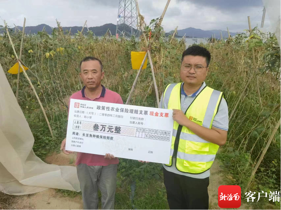 新海南客户端、南海网2月8日消息(记者 利声富)“拿到冬季瓜菜保险理赔款后,损失减少许多。”8日,从人保财险三亚分公司工作人员手中领到去冬今春瓜菜保险理赔款后,三亚市崖州区三更村种植户陈小军高兴地说。截至目前,三亚市千余户豇豆种植户领取逾千万元蔬菜价格指数保险理赔。