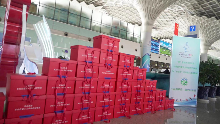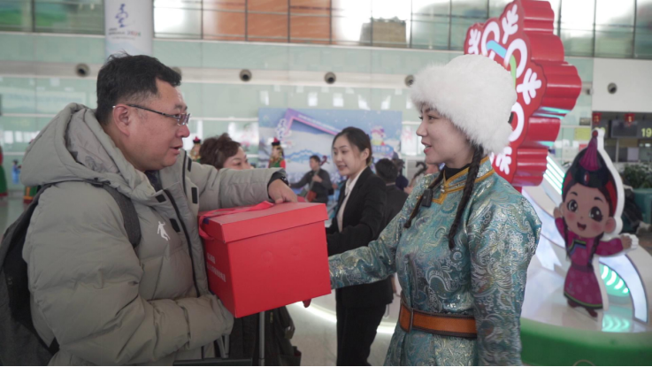 2月16日,参加“十四冬”比赛的各地代表团陆续抵达呼伦贝尔市海拉尔东山国际机场,在“十四冬”筹委会的支持下,自治区农牧厅精心组织了“‘蒙’字标大草原优品助力‘十四冬’迎宾赠礼”主题宣传活动,为各参赛代表团赠送“大草原优品”伴手礼,牛肉干、芥花油、蓝莓、黑木耳等内蒙古特色优质农畜产品均在其中,为运动健儿加油助威!