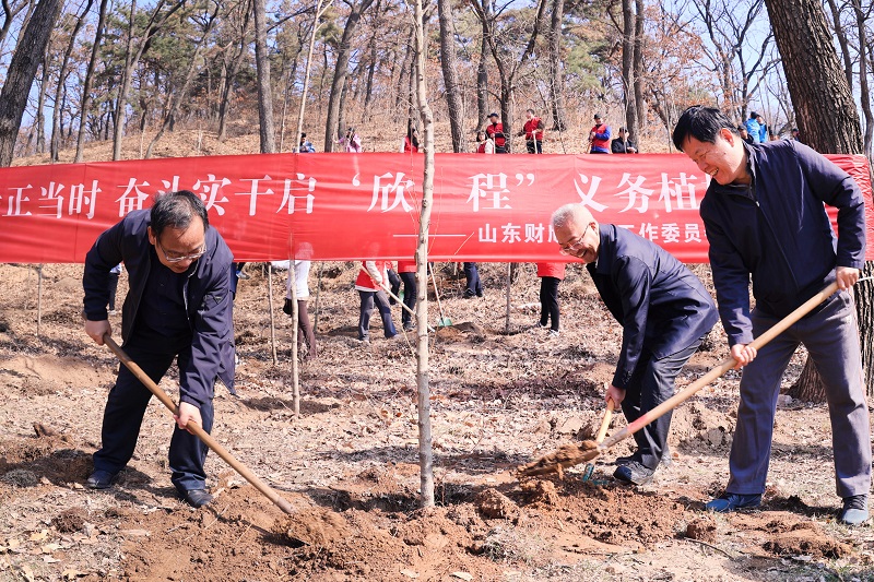 3月15日,与山东财欣公司团总支委员会等联合开展了以“撒播新绿正当时 奋斗实干启‘欣’程”为主题的义务植树活动。植树现场,大家按照“三埋两踩一提苗”的步骤,共同栽下“财欣林”,为山东省药乡林场再添新绿。