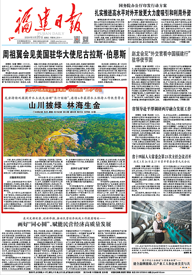 3月20日,《福建日报》头版刊发《山川披绿 林海生金》