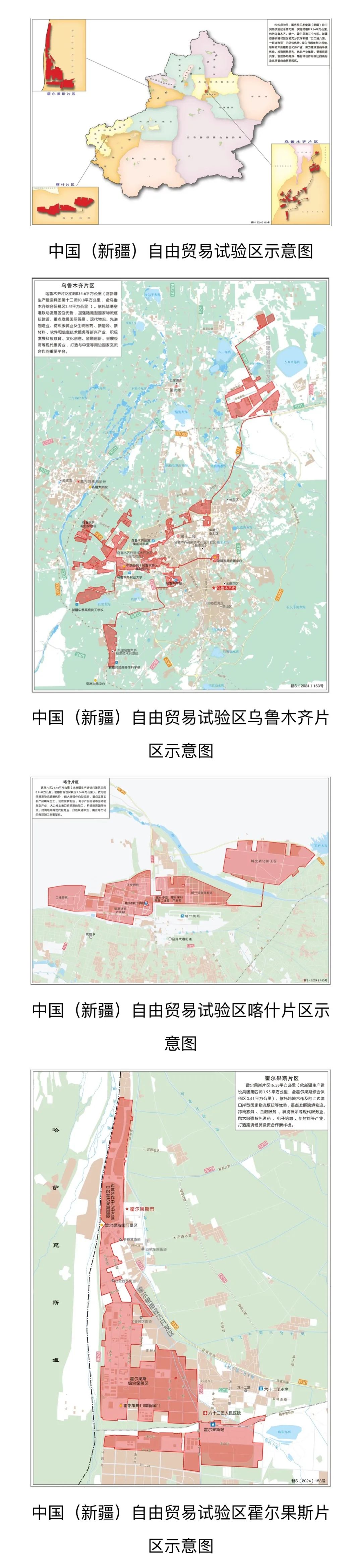 根据国家有关要求,经商务部、自然资源部审核,并经自治区人民政府同意,中国(新疆)自由贸易试验区示意图正式对外公布。