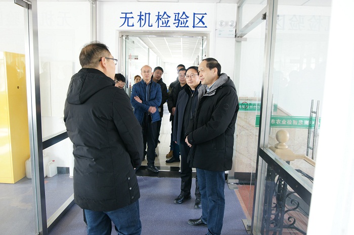 3月9日上午,农业农村部农产品质量安全监管司二级巡视员李家健一行到沈阳市乡村振兴发展中心农业检验监测中心考察工作。省农业农村厅二级巡视员于和之、市农业农村局副局长崔颖等陪同调研。