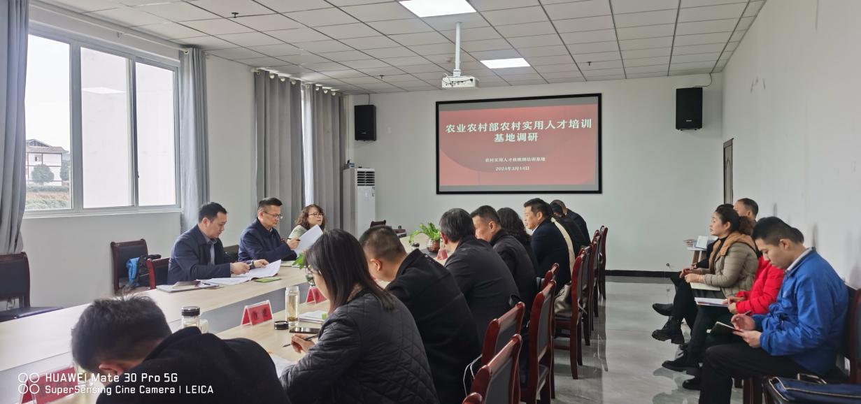 为贯彻落实中央农村工作会议和全国农业农村厅局长会议精神,全面了解全国农村实用人才培训基地情况,总结经验做法,发现问题不足,系统谋划推动基地健康有序发展举措,夯实农村实用人才带头人培养工作基础,近日,由农业农村部人事司组织,中央农广校副校长宋聚国、人才发展处副处长曹琳琳、湖北省农业农村厅科教处张爱华副处长一行赴我省湄潭县核桃坝村农村实用人才培训基地开展调研指导。省农业农村厅人事处(人才工作处)处长王文虹、省农业广播电视学校校长宋明伟、副校长罗丁涛等参加。