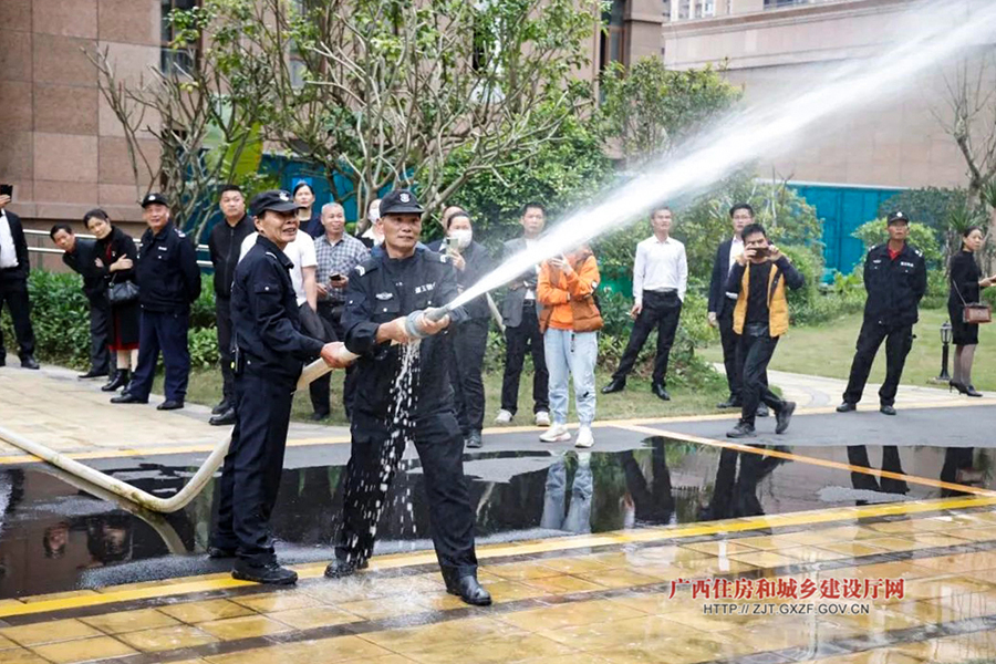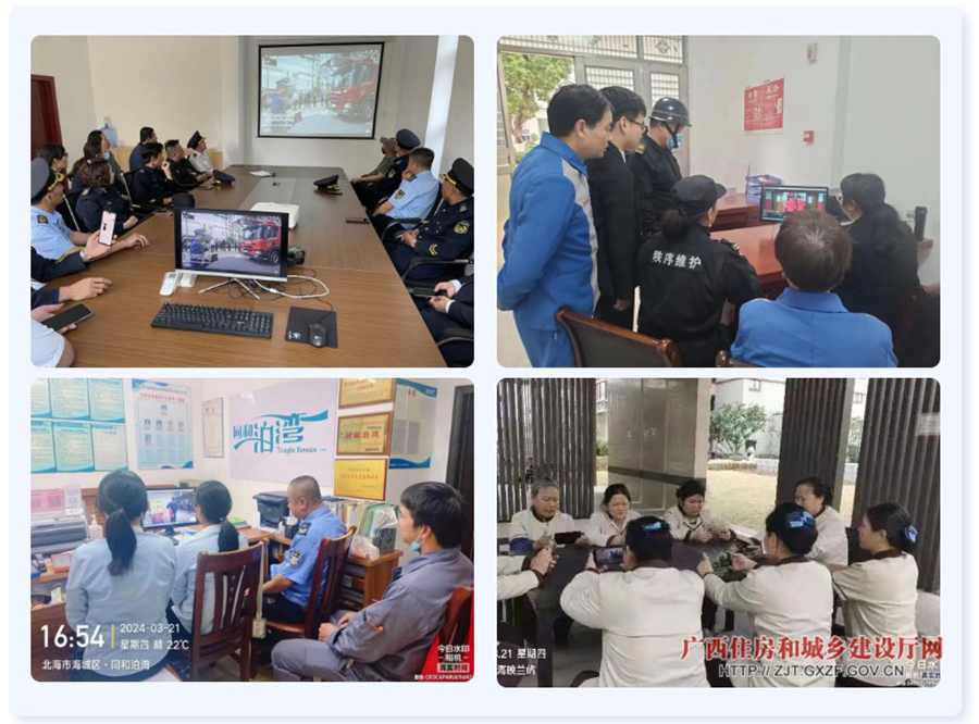 本次活动以线上线下相结合的方式开展。自治区住房城乡建设厅、广西消防救援总队各相关业务处室负责人在自治区主会场参加会议。各地相关单位代表和各物业服务企业负责人16.5万余人在各地分会场参加会议;部分物业服务企业代表在北海现场参加示范检查活动。(姚琳尹/文 自治区住房城乡建设厅房地产市场监管处供图)