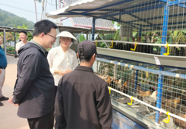 在班母村十四组、八组养殖户家中,调研组查看了由省农业农村厅帮扶的“云上乡村鸡”“云上黑山羊”等养殖试点项目,要求驻村工作队队员要发挥技术优势,认真指导群众,按照技术标准,科学规划养殖,积极探索高效养殖模式,助力脱贫群众增收。