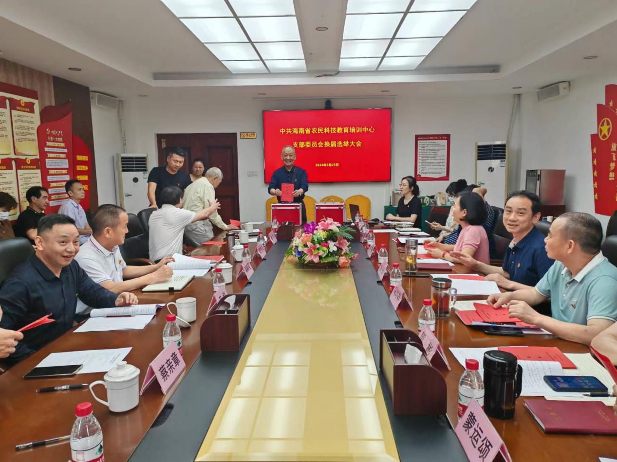 随后,召开了新一届支部委员会第一次全体会议,会议选举新一届支部委员会书记和副书记。新当选书记刘云同志表示:新一届支委会将继续以习近平新时代中国特色社会主义思想为指导,努力践行党的二十大精神,切实发挥党组织的战斗堡垒作用和共产党员的先锋模范作用,引领全体教职工勇挑重担,奋勇前行,办好让农民满意的教育培训,为海南乡村振兴和自贸港建设积极贡献力量。