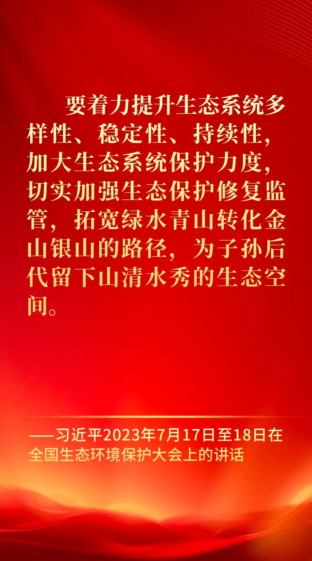 要着力提升生态系统多样性、稳定性、持续性,加大生态系统保护力度,切实加强生态保护修复监管,拓宽绿水青山转化金山银山的路径,为子孙后代留下山清水秀的生态空间。