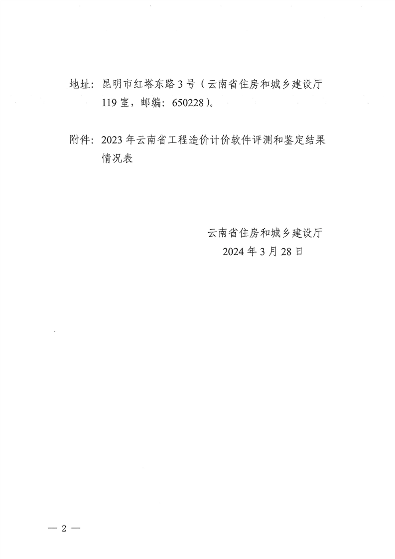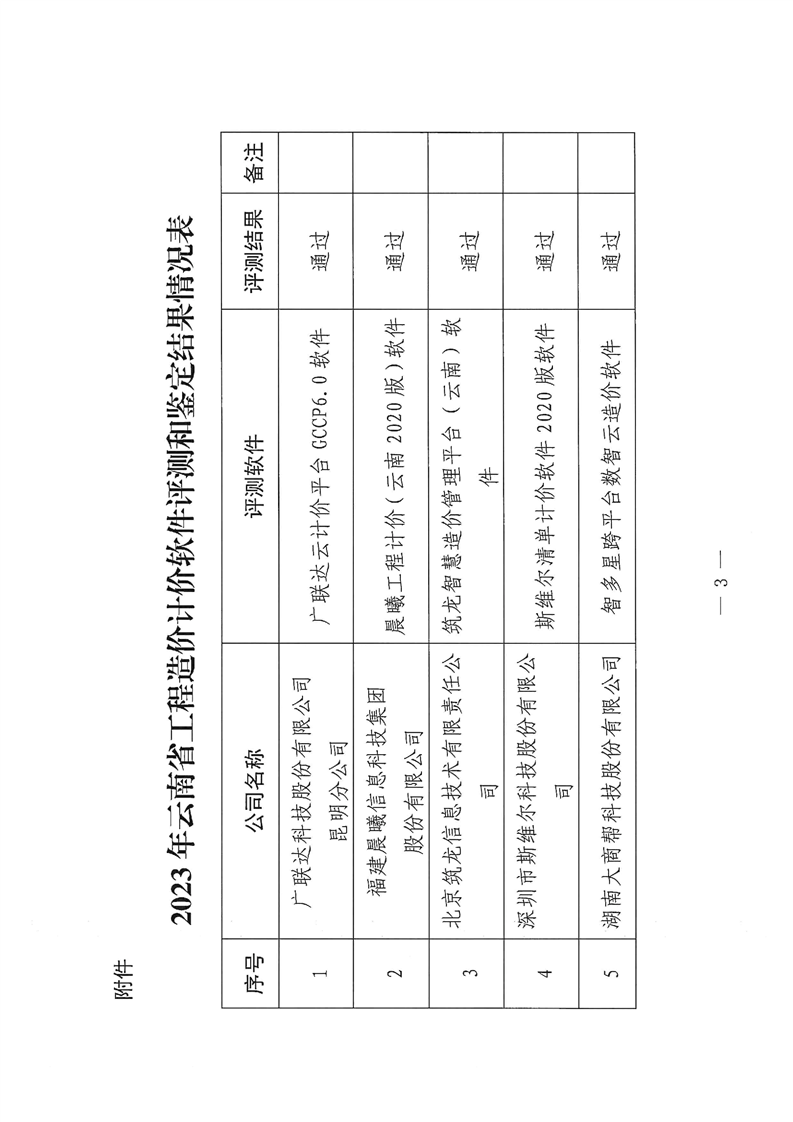 云南省住房和城乡建设厅关于2023年云南省工程造价计价软件年检评测结果的公示