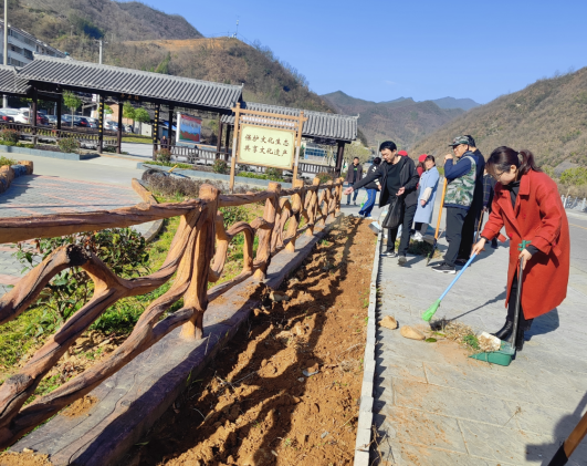 3月27日,略阳县白雀寺镇江韵文化广场人头攒动,镇村干部、公益岗、志愿者们不怕脏累,对镇政府周边道路可视范围内进行地毯式清理清扫,对广场花园内进行杂草清理及主干道路两侧植绿补绿、花卉种植。