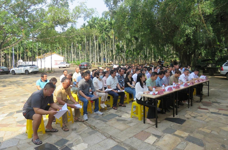 海南省农民科技教育培训中心主任(省农业广播电视学校校长)刘云,省农业农村厅机关工会主席(荔枝链副链长)张绍辉,省农业科学院热带果树研究所副所长、省荔枝产业技术体系高产优质栽培岗位专家胡福初,琼山区委常委、组织部长王运清,琼山区乡村振兴局局长何明堂,琼山区农业农村局副局长董永耀,三门坡镇全体班子成员,各村(居)书记,荔枝产业链党委及下设党支部组成人员等120人参加揭牌仪式。