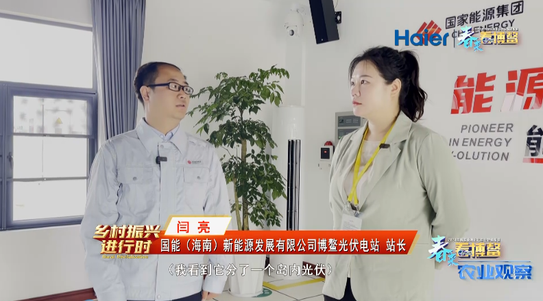 出镜记者 李晓 这个农光互补项目不仅满足了我们博鳌近零碳示范区的一个绿电需求,同时也为我们当地的农户提供了更多的就业岗位,助力了我们的乡村振兴。