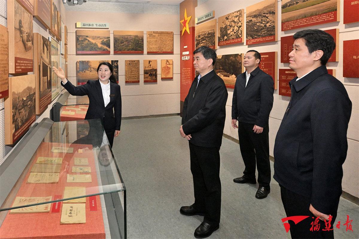 红色是革命老区发展的鲜亮底色,优秀传统文化是革命老区的深厚底蕴所在。调研中,周祖翼一行察看了武平县文博园的县博物馆、图书馆和兴贤坊传统文化街区,长汀县的福建省苏维埃政府旧址和汀州古城等。周祖翼强调,要传承红色基因,深入挖掘红色资源,加强文化遗产传承保护与活化利用,创新展陈讲解,加强宣传阐释,讲好福建革命故事、历史故事,更好地以文化赋能革命老区振兴发展。
