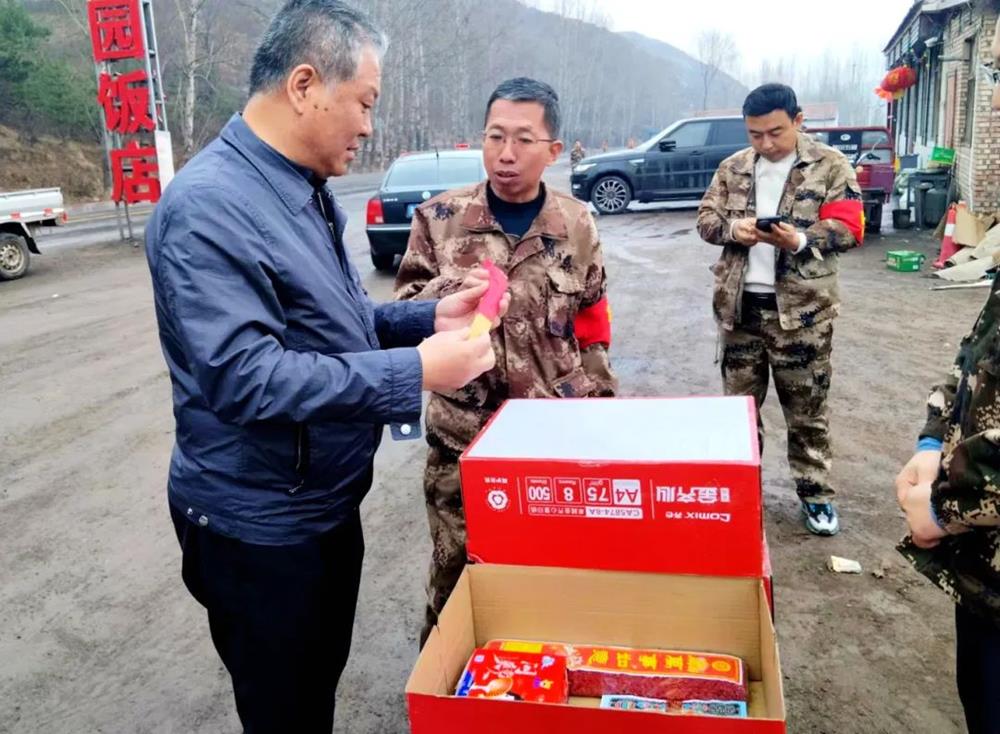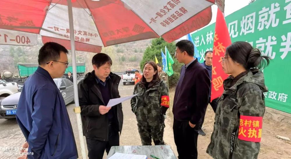 ▲四级调研员彭飞在介休市龙凤镇、绵山镇沿线防火检查站检查防火工作