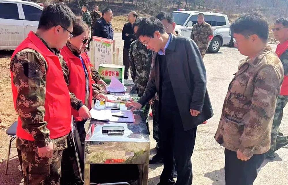 ▲土地储备中心主任孙永亮在平遥县超山防火检查站检查防火工作