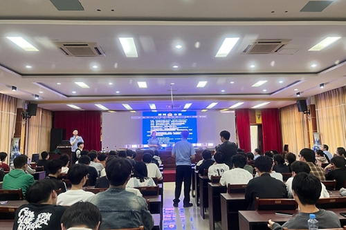 民警在学院报告厅开展反诈宣传讲座活动,通过生动的案例,向师生们揭示了网络诈骗的种种手段和危害。他详细介绍了常见的诈骗类型,并剖析了诈骗分子的心理和行为特征。随后,民警通过提问、讨论等形式,引导师生们积极思考,主动参与到反诈知识的学习中来。讲座现场气氛热烈而融洽,同学们积极参与互动。
