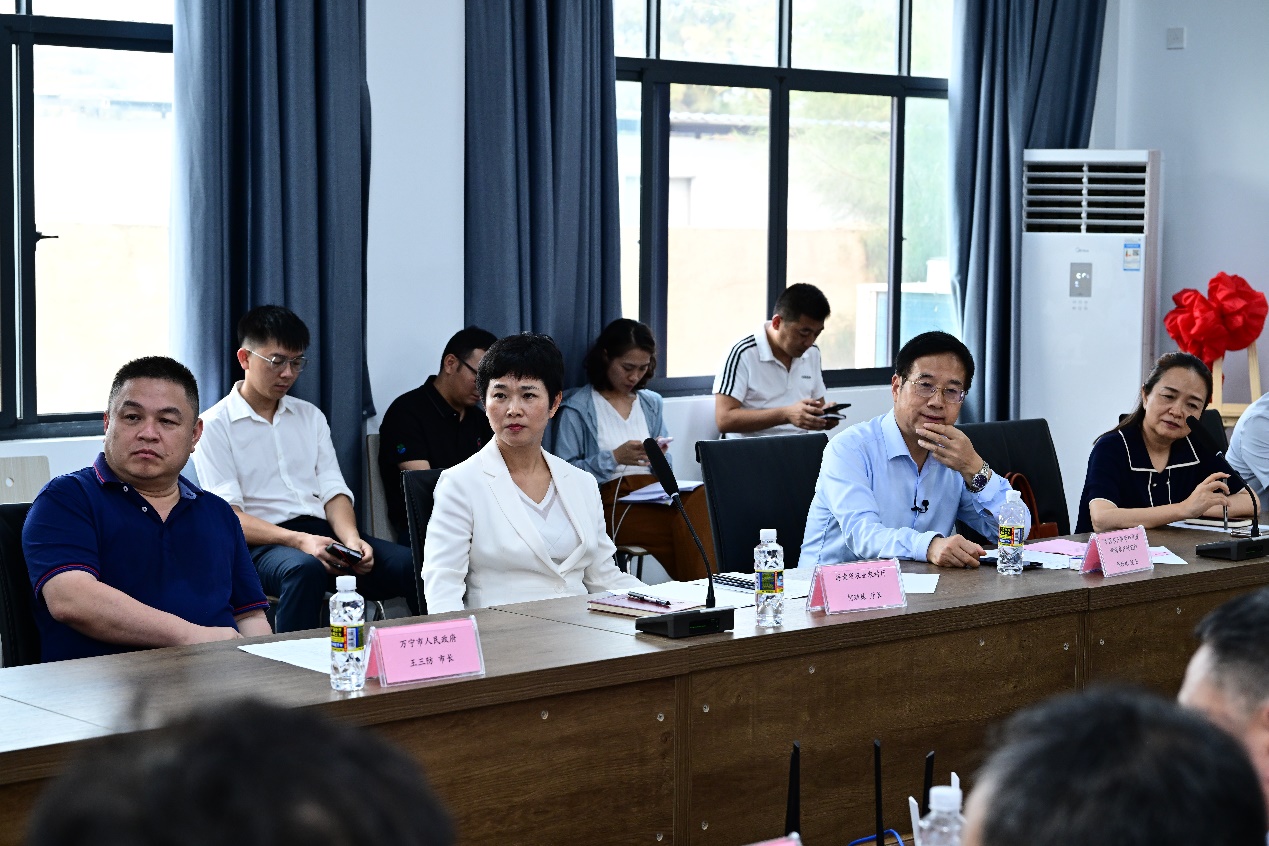 (从左至右:万宁市市长王三防、省农业农村厅厅长何琼妹、中国工程院院士陈松林,省科学技术厅副厅长蒙巍)