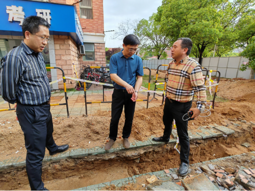 调研组一行深入驻昌单位雨污分流改造现场,认真听取公安部南昌警犬基地项目筹备中遇到的难点堵点问题和项目建设资金落实情况,仔细询问南昌航空大学前湖校区沟槽开挖回填、管道敷设等施工细节,详细查看江西科技师范大学红角洲校区雨污分流改造成效。