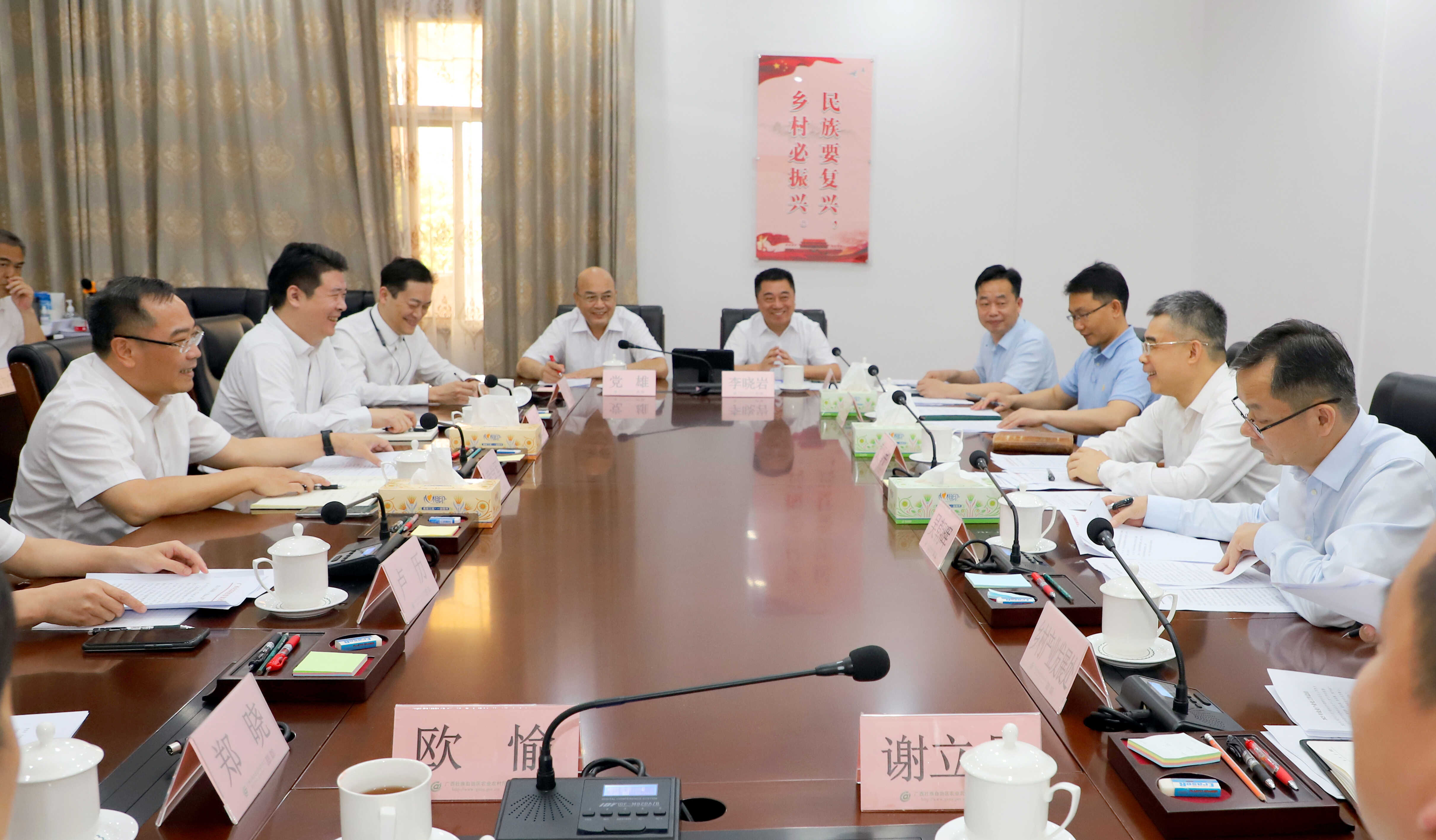 4月16日,自治区农业农村厅与广西北部湾投资集团有限公司、昆仑同康(上海)农业发展有限公司交流座谈,自治区农业农村厅党组书记、厅长黄智宇,广西北部湾投资集团有限公司党委副书记、副董事长、总经理黄学军,昆仑同康(上海)农业发展有限公司董事长兼总经理张国庆出席座谈会并讲话;自治区农业农村厅党组副书记、副厅长吴朝晖,厅党组成员刘志颐等领导出席座谈会。