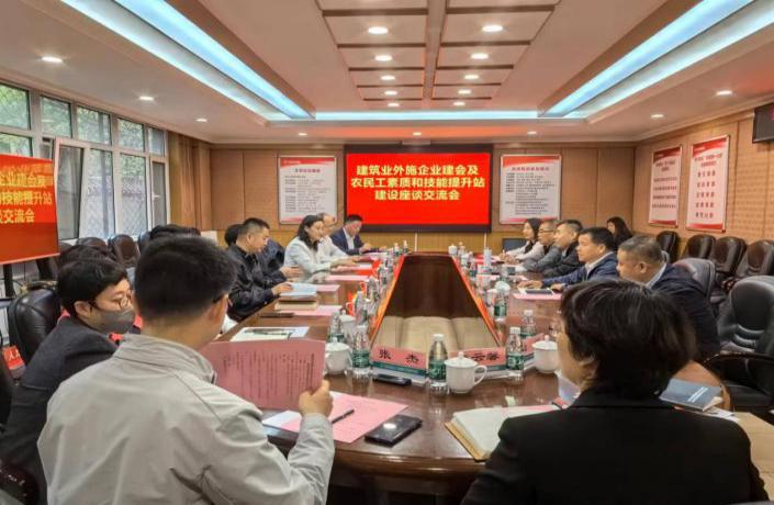 考察组来到北京住总人力资源开发服务中心,深入了解北京市建筑工会关于外施企业建会及农民工入会先进经验做法,并就农民工素质和技能提升站建设情况进行深入交流。北京市建筑工会副主席曾爱国、北京城建集团工会副主席刘健、北京住总集团党委副书记、工会主席李晓巍、中建二局工会助理总经理、劳动经济保障部主任王俊华分别就北京市建筑工会全面工作情况、外施企业工会联合会服务农民工情况、农民工素质和技能提升站建设情况进行了深入交流。