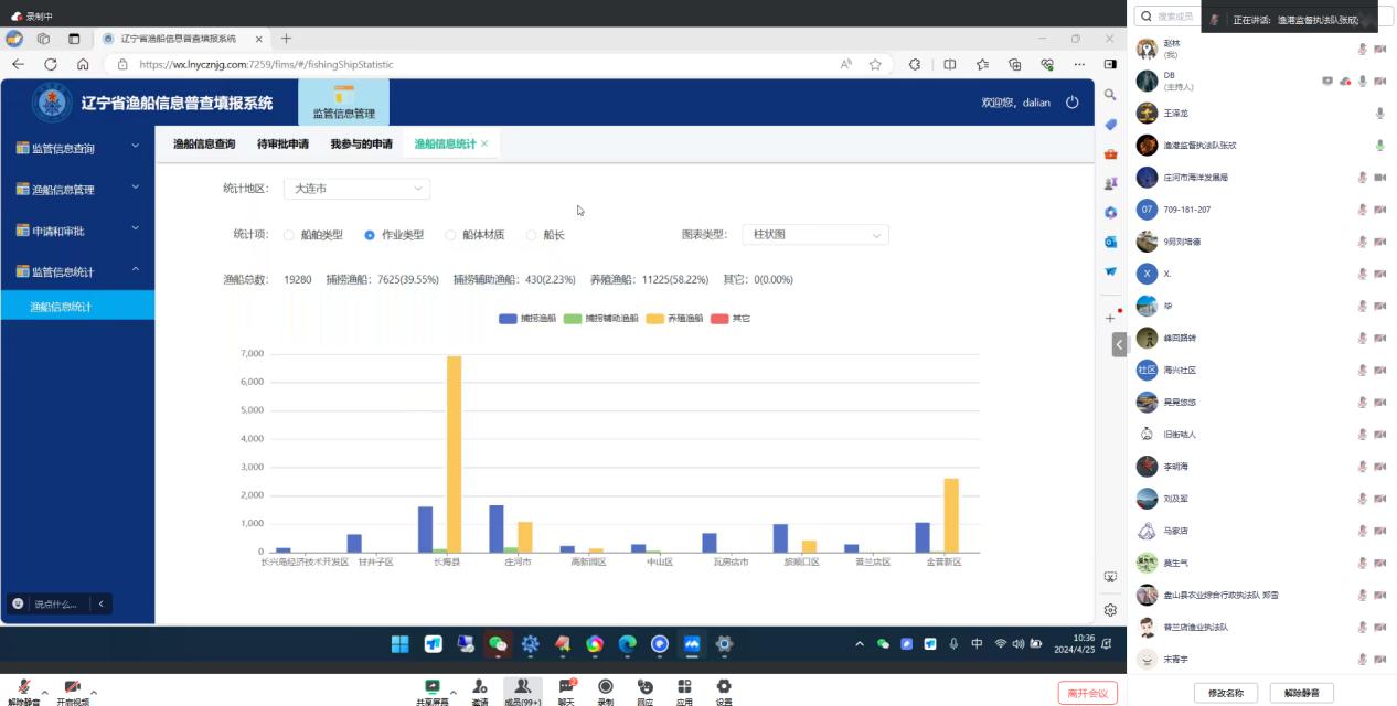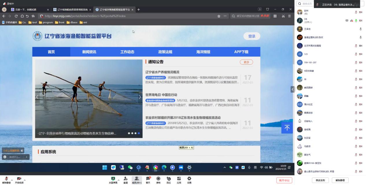 按照《关于辽宁省涉海渔船及界江船舶智能监管平台项目实施方案的批复》要求,系统建成并稳定运行一年以后要整体迁移至省政府数据中心,在省厅和省总队的统一安排部署下,去年年底,省渔港监督执法队启动了涉海渔船智能监管系统的迁移工作,相关国产化软件的适配开发工作已于4月19日全部完成。4月22日,省渔港监督执法队会同技术运维单位启动了系统的数据迁移和登录服务器切换工作,4月25日上午9时30分系统迁移工作圆满完成,为确保系统迁移后各项工作有序进行,25日上午10时,省渔港监督执法队组织开展了系统迁移后的首次线上业务培训,来自沿海各市及所属沿海县(市、区)、乡镇(街道)的167名系统使用人员参加了此次培训。