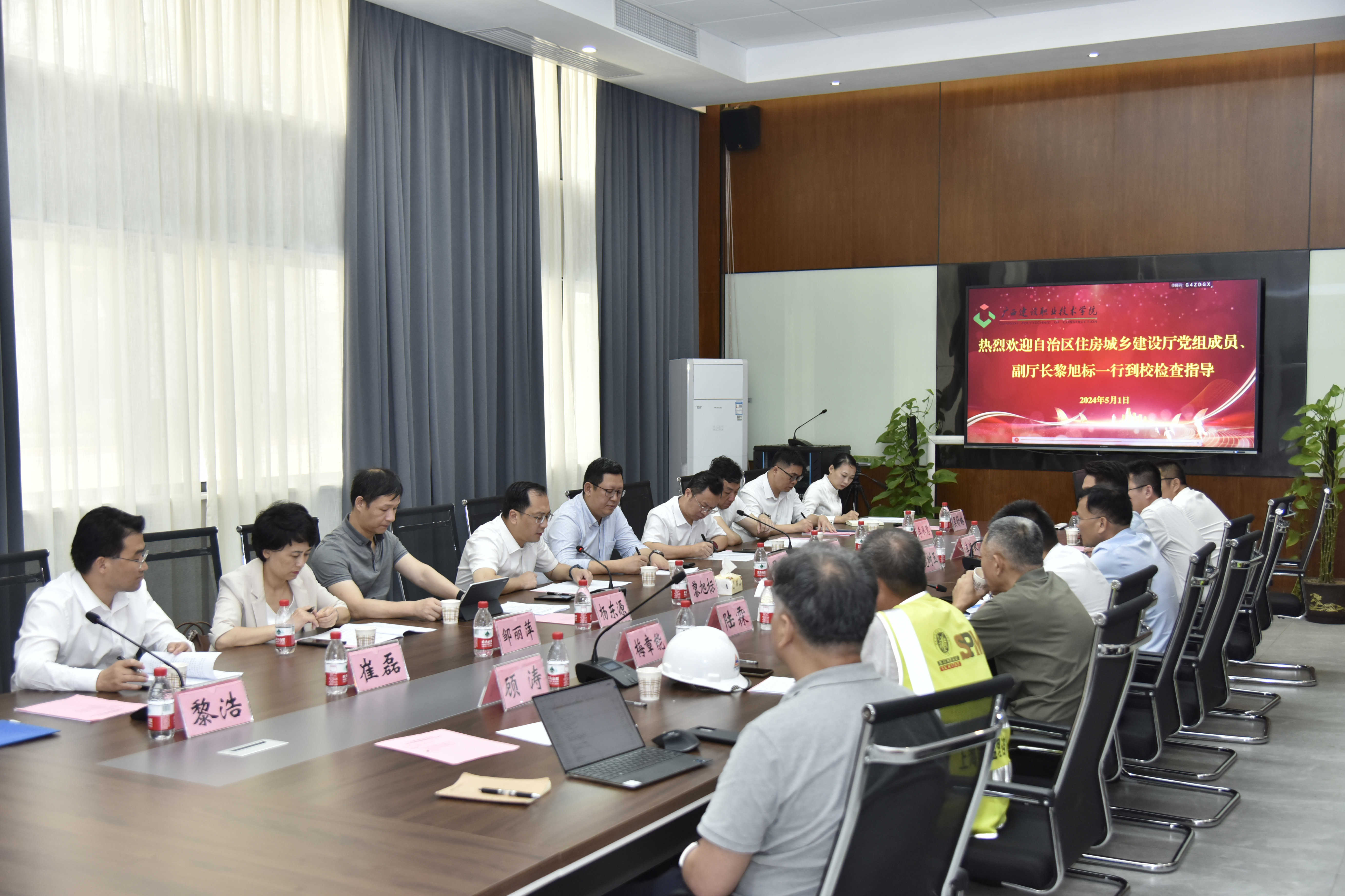在“五一”国际劳动节来临之际,5月1日,自治区住房城乡建设厅党组成员、副厅长黎旭标组织召开广西建设职业技术学院新校区项目现场工作推进会,并慰问项目一线干部职工。