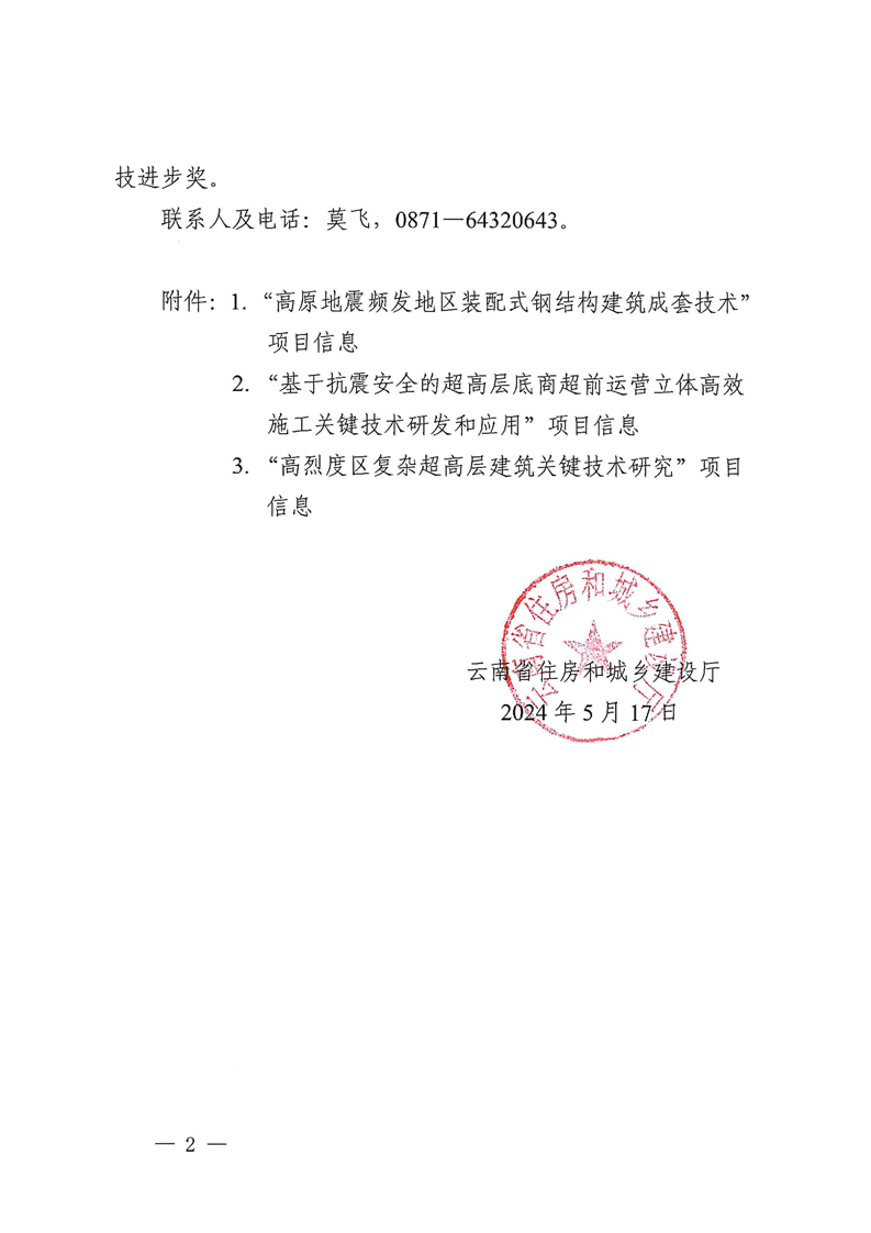 云南省住房和城乡建设厅关于2024年度云南省科学技术奖提名项目公示结果的通知