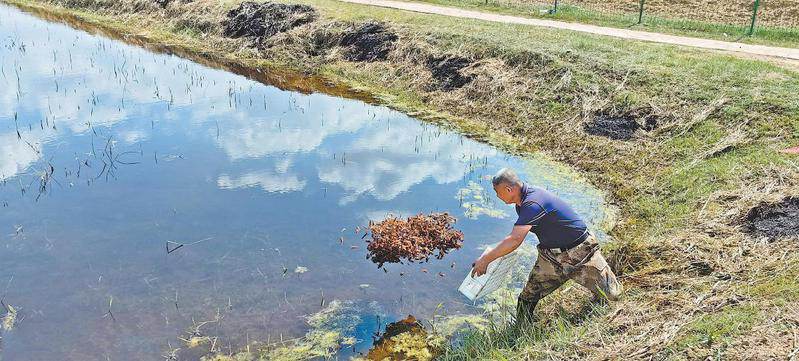塔湾镇塔湾村水产养殖基地投放小龙虾虾苗 赵娜摄