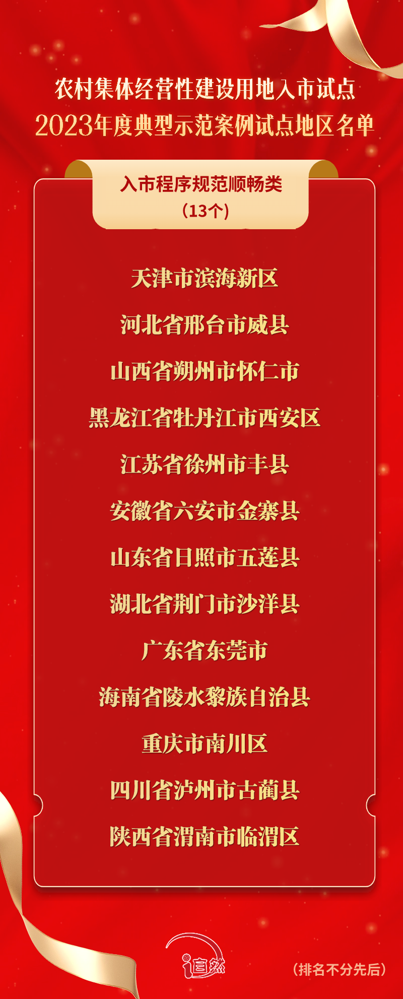 为更好推动各地入市试点规范运作,在总结推广典型经验的基础上,自然资源开发利用司2023年底面向试点省份征集案例,聚焦案例时效、特色做法和可推广性,最终35个试点地区入选典型示范案例。其中,入市程序规范顺畅类13个、收益分配科学可持续类12个、用地主体引导有效类10个。