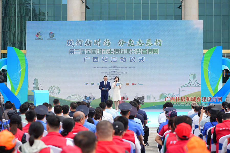 5月23日,第二届全国城市生活垃圾分类宣传周广西站启动仪式在南宁市举行,此次活动由自治区城镇生活污水治理及城市生活垃圾分类处理工作领导小组办公室、南宁市人民政府主办,以“践行新时尚 分类志愿行”为主题,通过开展一系列丰富多彩的活动,引导群众养成垃圾分类的文明习惯,助力广西生态文明建设。自治区住房城乡建设厅二级巡视员甘梅华同志出席启动仪式并致辞。