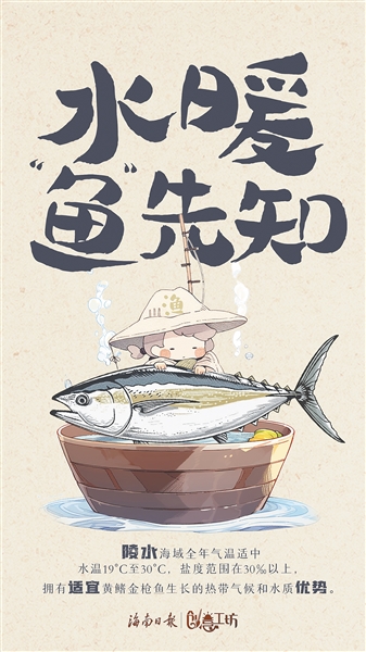 5月26日,海南日报新媒体特别策划推出创意海报,将AI设计与手绘相结合进行画面呈现,并通过“爆改”诗词的形式,生动有趣地向大家展现黄鳍金枪鱼的特点以及陵水在养殖黄鳍金枪鱼过程中取得的阶段性重大突破。
