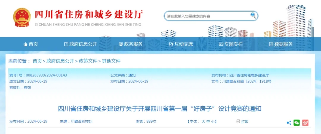 为深入贯彻全国住房城乡建设工作会议精神,贯彻落实四川省住房城乡建设工作会议部署,大力推进“四好”建设,提升“好房子”设计水平,为人民群众创造高品质生活空间,推进勘察设计行业高质量发展,四川省住房和城乡建设厅于近期组织开展四川省第一届“好房子”设计竞赛。