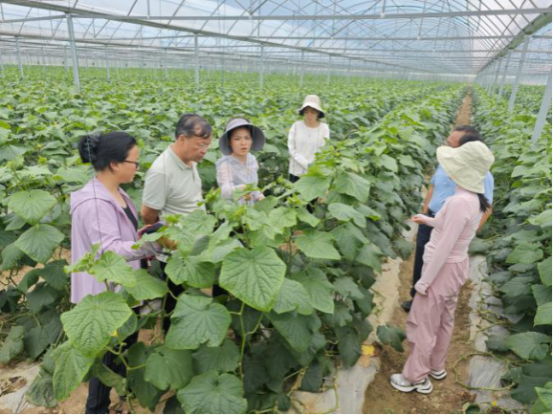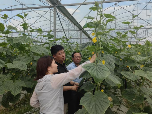 服务组结合项目内容,实地查看黄瓜品种引进试验田间情况,了解不同品种当前长势和病虫害发生情况,并对下步设施生产土壤改良进行讨论。服务组强调,当前在田黄瓜已不同程度出现霜霉病和病毒病等,蚜虫和蓟马也可见。随着温度逐步升高,棚室内温湿度增大,要注意通风换气,清理残株残叶,及时做好病虫害防治,记录不同品种田间适应性和产量表现,为下年生产做好品种储备,并持续开展设施生产黄瓜品种引进试验筛选。同时,结合项目安排,做好冬季棚室内土壤改良物资储备,通过施用土壤改良剂、种植绿肥、合理轮作等方法,调节土壤,为植株根系生长创造适宜环境,构建“耕地—作物—产品”菜地良性循环生态系统。