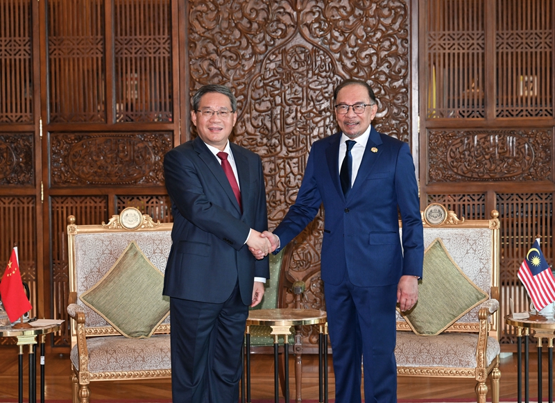 李强指出,中方愿同马方更紧密对接发展战略,更充分发挥互补优势,扎实推进东海岸铁路、“两国双园”等重大项目建设,扩大贸易投资规模,拓展物流、新能源、人工智能、数字经济、铁路装备等领域合作,加强减贫合作,更好实现合作共赢。双方要深化文旅、教育、青年、地方等人文交流,进一步便利两国人员往来。中方愿同马方密切多边领域协作,共同弘扬和平共处五项原则以及和平、合作、包容、融合的亚洲价值观,共同维护东盟在区域合作中的中心地位,推动高质量实施《区域全面经济伙伴关系协定》,尽快完成中国-东盟自贸区3.0版谈判,携手为地区乃至世界的和平稳定、繁荣发展作出更积极贡献。