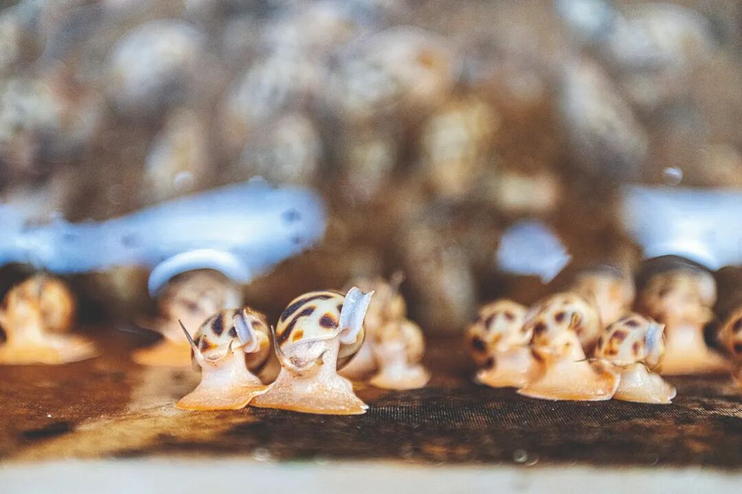 宽敞的大棚里,至少建有60个池子,每个池子都有两根水管,分别负责进、出海水,水下是一层20公分厚的沙子。当饲养员把一桶桶小带鱼撒进池子后,奇妙的情景出现了,沙层突然像烧沸的开水一样翻滚起来,成千上万只东风螺蠕动着钻出沙层,吸附在带鱼身上,大快朵颐。