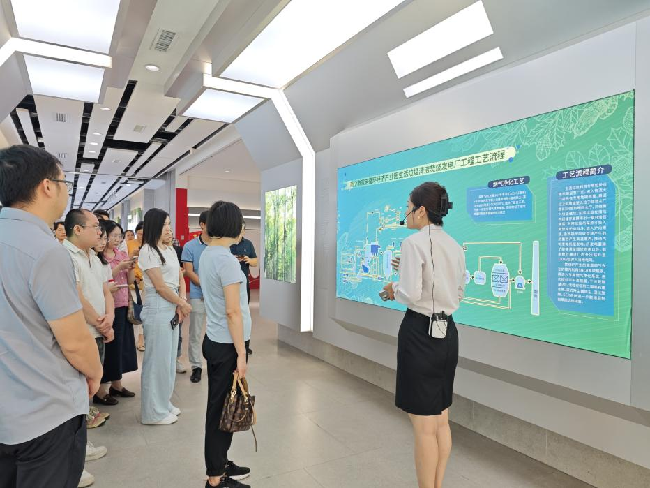 参加培训的干部职工前往南宁市双定循环经济产业园区进行现场学习,先后参观焚烧发电厂主厂房沙盘、卸料平台、观光长廊、中控室、观火平台,以及渗滤液样品摆放处等区域,近距离了解生活垃圾清洁焚烧发电厂的建设过程、处置流程以及重要作用。