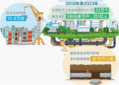当前,我国城市发展已进入存量更新阶段,老旧小区改造作为重大民生工程和发展工程,事关群众获得感、幸福感、安全感。数据显示,2019年至2023年,全国累计新开工改造城镇老旧小区22万个,惠及居民3800多万户、约1亿人。