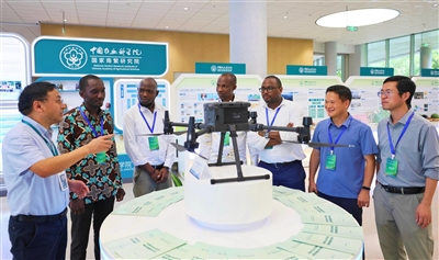 7月1日,在三亚中国农业科学院国家南繁研究院,来自非洲的科技人员正在了解农业科技产品。记者 刘琪成 摄
