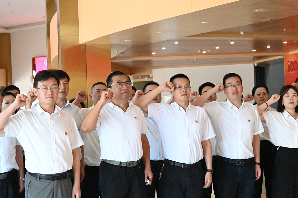 樊晟一行首先来到安仁镇树人街,实地查看和详细了解古镇保护、建设等情况,探寻优秀传统建筑文化的传承与创新,感悟千年人文古镇的内涵和魅力。在建川博物馆百年礼赞馆,全体党员面对党旗,紧握右拳,用铿锵有力的声音重温入党誓词,然后跟随讲解员观看展览,全面回顾中国共产党团结带领全国人民砥砺奋进、奋斗百年的峥嵘岁月和光辉历史,从党的百年历程中深刻领会纪律建设的重大意义。